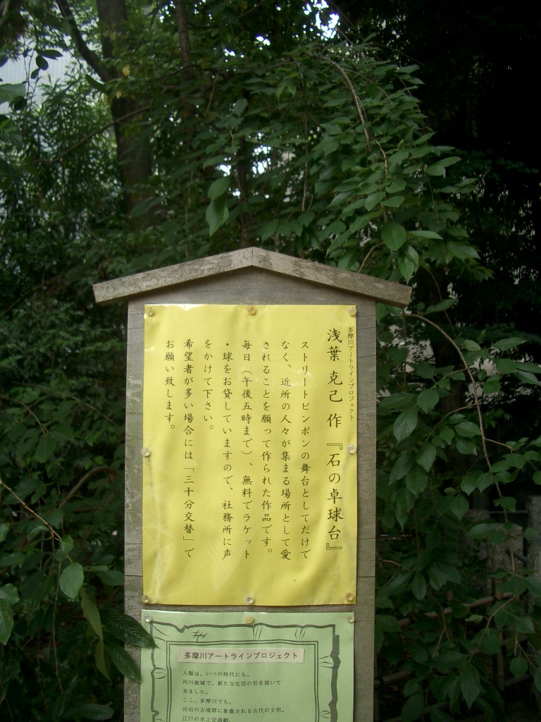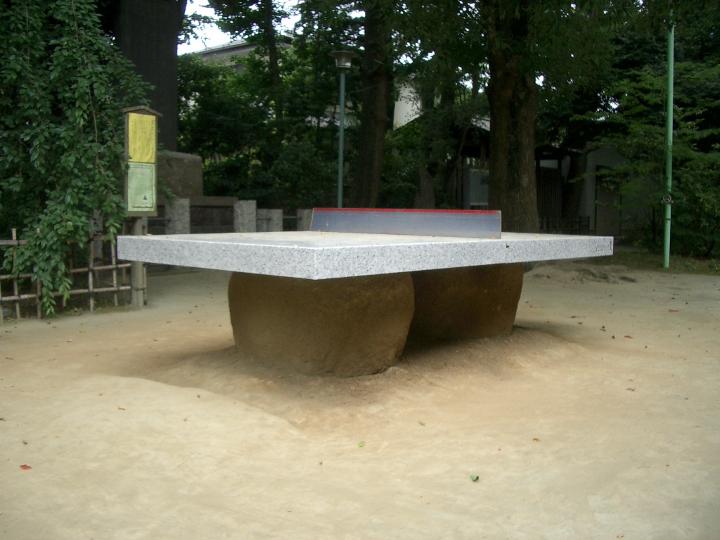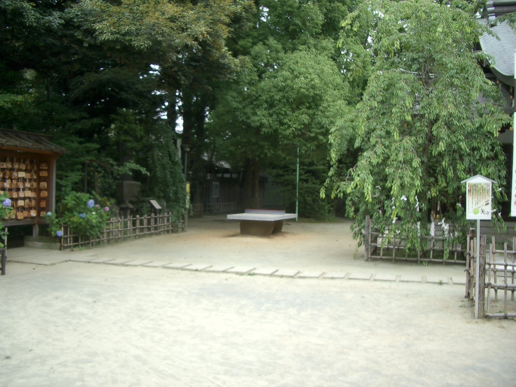 境内を進むと左前方に鎮座する石の卓球台が見えてきます。