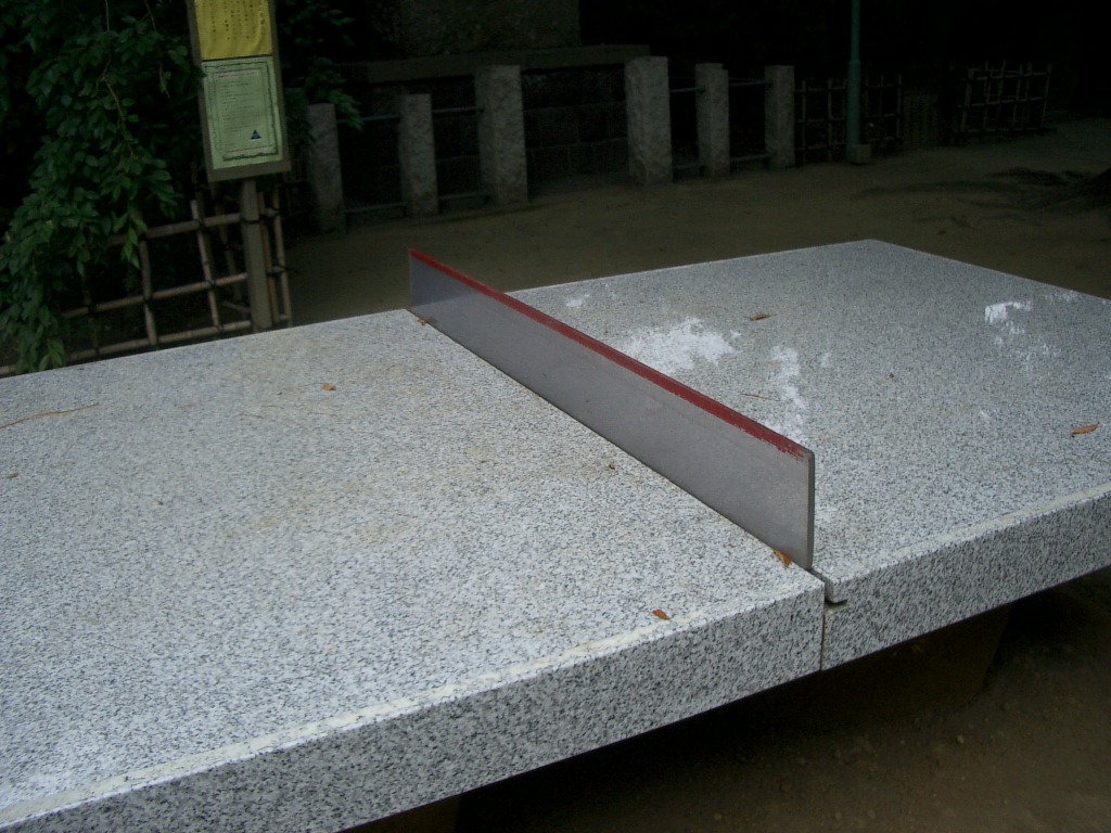 ところが、墓石のような質感の石を使ったこんな卓球台は他に見たことがありません。